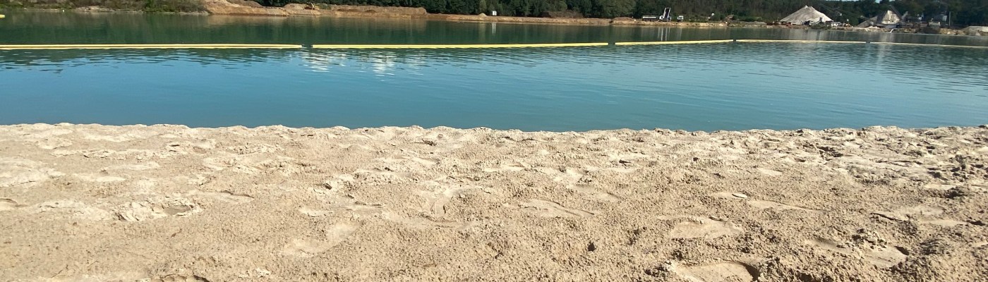 Der Strand besteht aus wirklich angenehmen feinem Sand. Man sollte hier allerdings nicht besonders lärmempfindlich sein, da zum einen der Sand-/Kiesabbau am gegenüberliegenden Seeufer hörbar ist (zumindest unter der Woche) , aber auch die startenden Flugzeuge vom Frankfurter Flughafen recht nah und tief über das Strandbad fliegen.